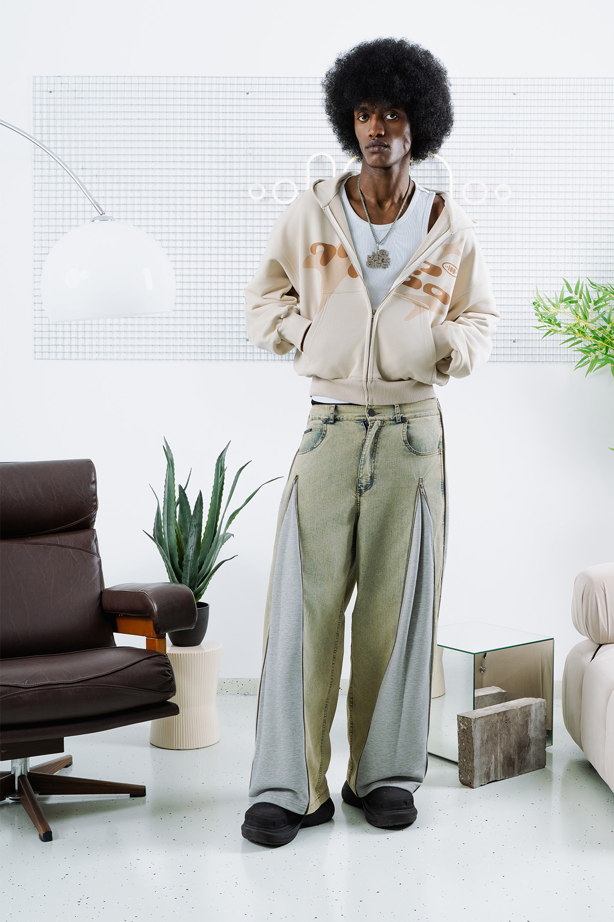 Bluza z kapturem o kroju “puffy” z zamkiem błyskawicznym, lekko ovesizowy wygląd.