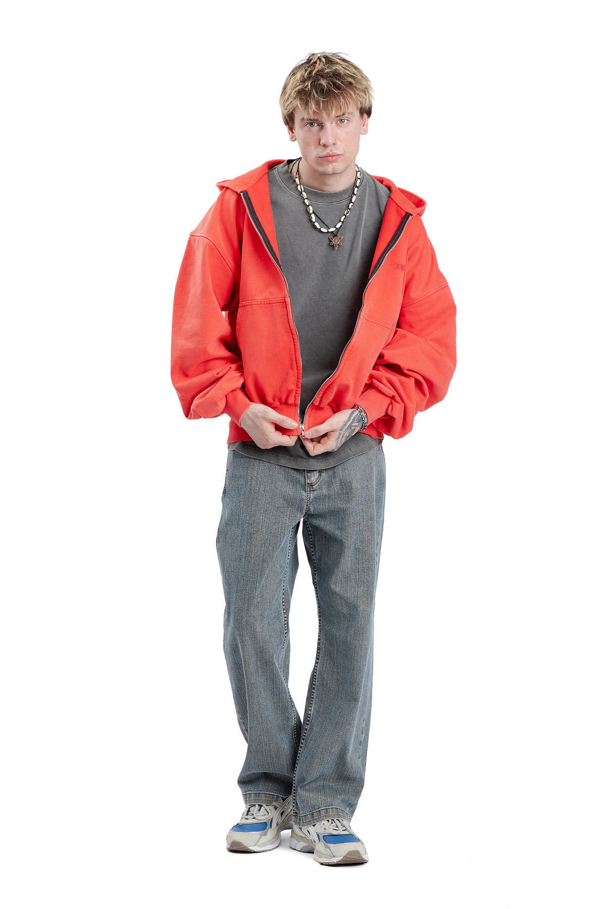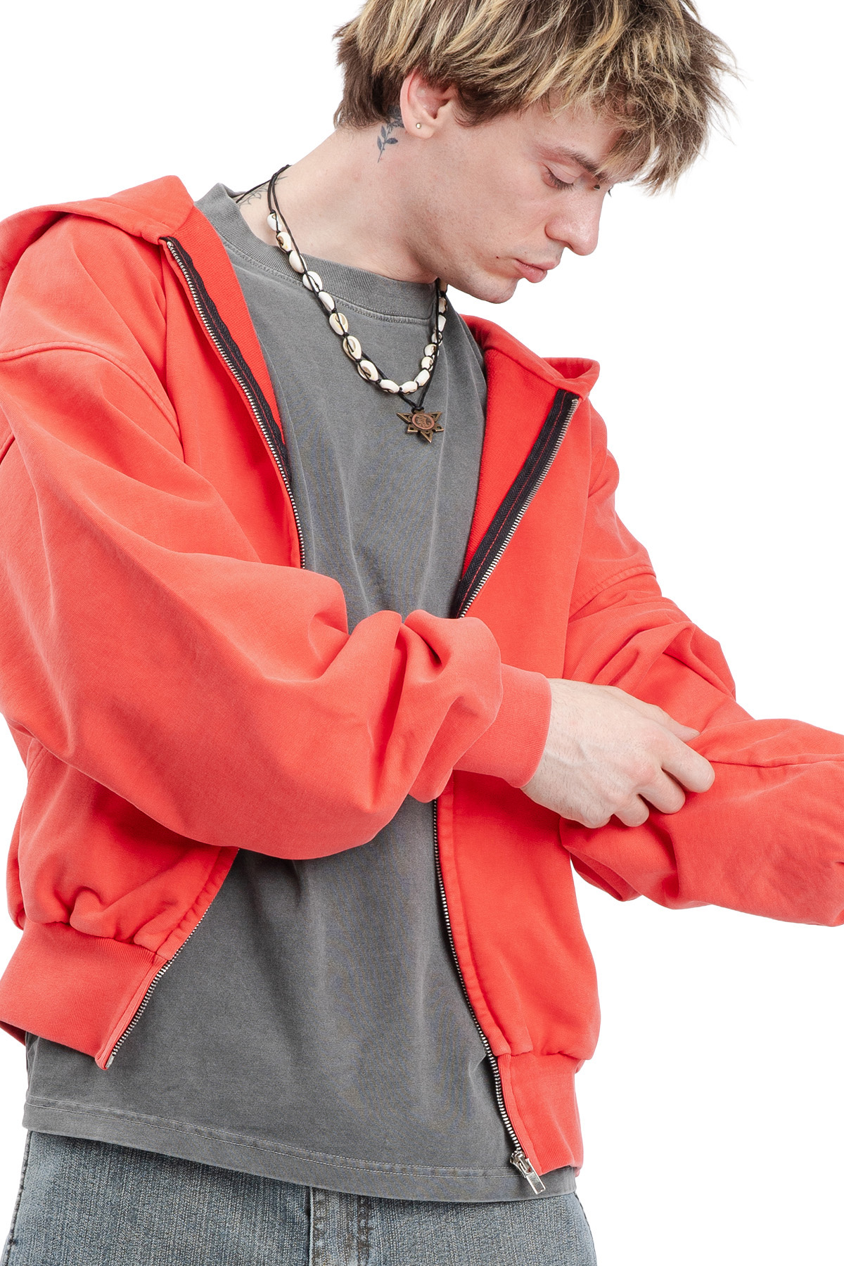 Bluza z kapturem o kroju “puffy zip” nadającym lekko ovesizowy wygląd.