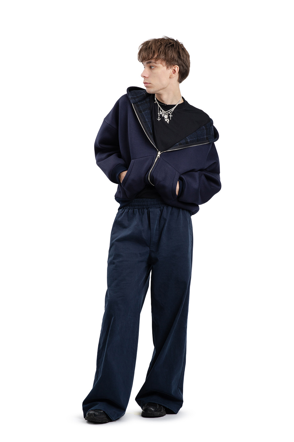 Podwójna warstwa dzianiny premium 340gsm. Skład materiału nurek na zewnątrz 40% bawełna, 57% poliester, 3% elastan. Od wewnątrz materiał w kratę: 100% wełna.