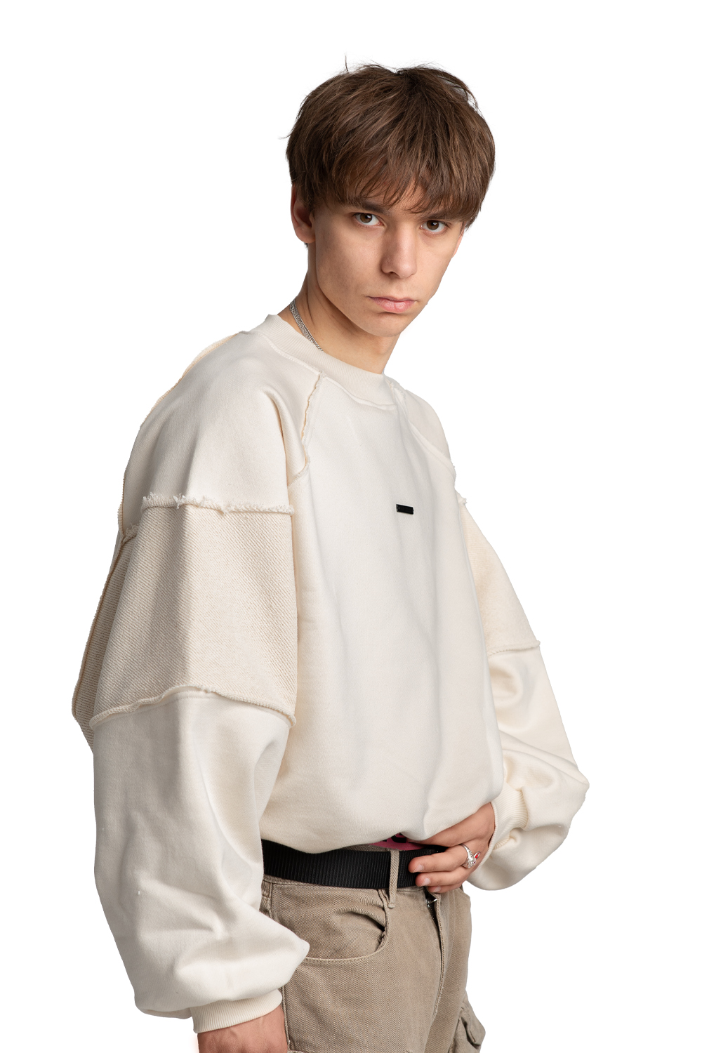 Bluza typu crewneck w kolorze naturalnej bawełny.