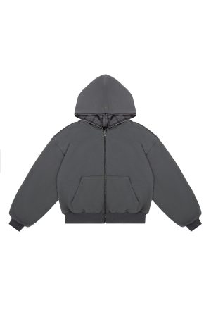 - SREBRNY ZAMEK BŁYSKAWICZNY FULL ZIP SIĘGAJĄCY PO CZUBEK KAPTURA
