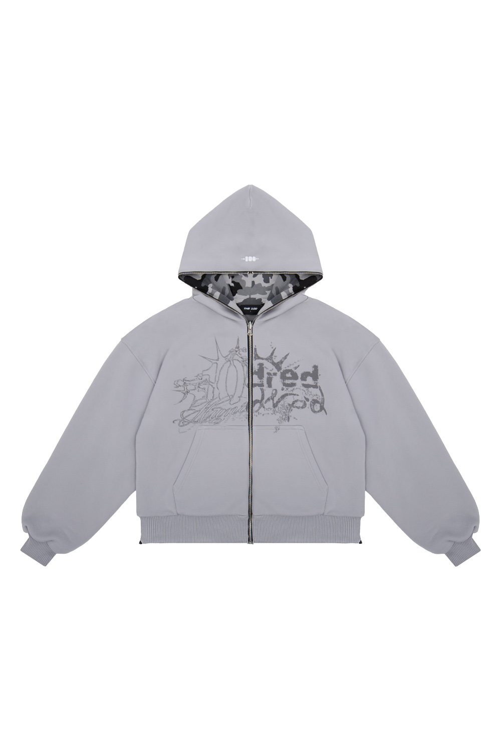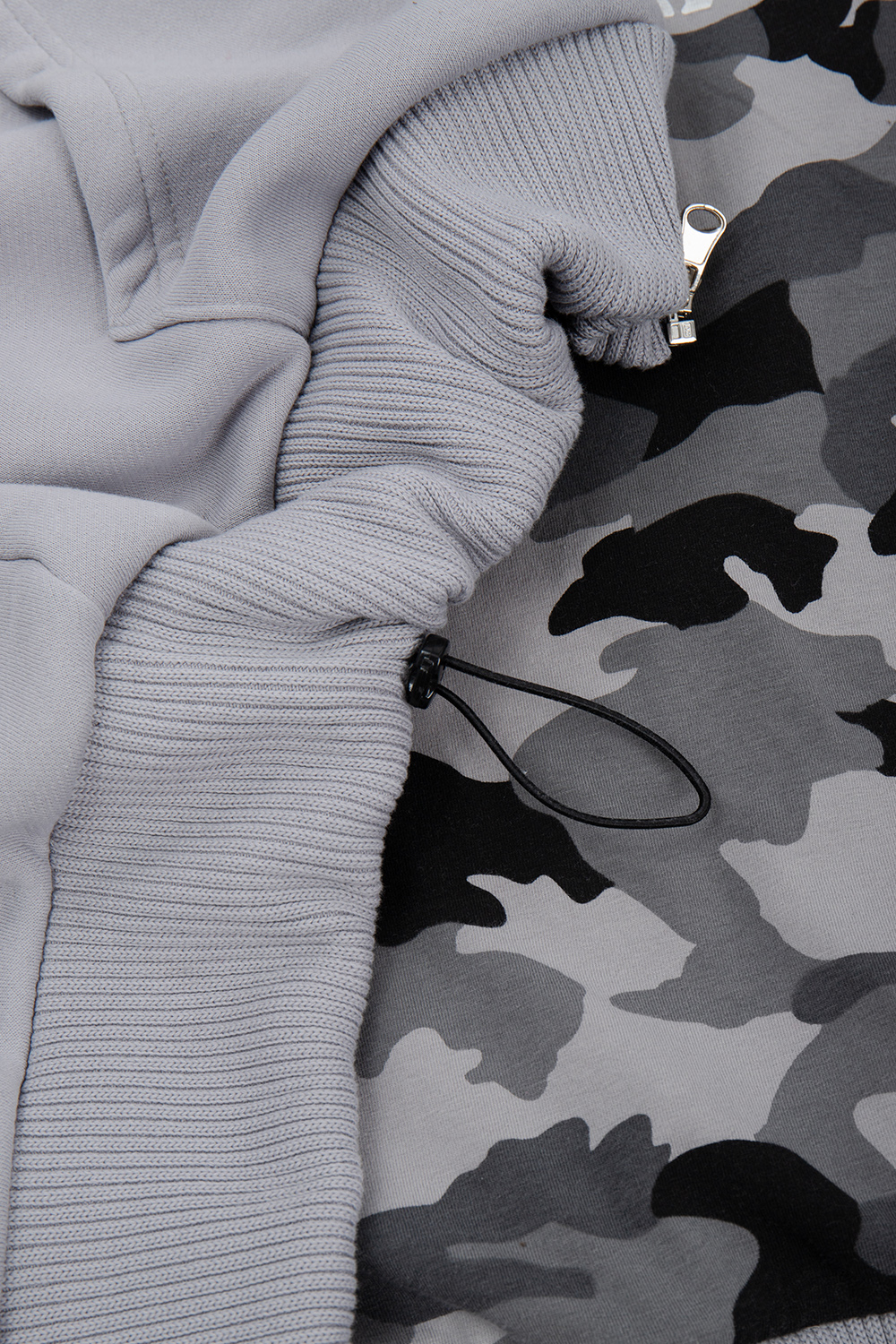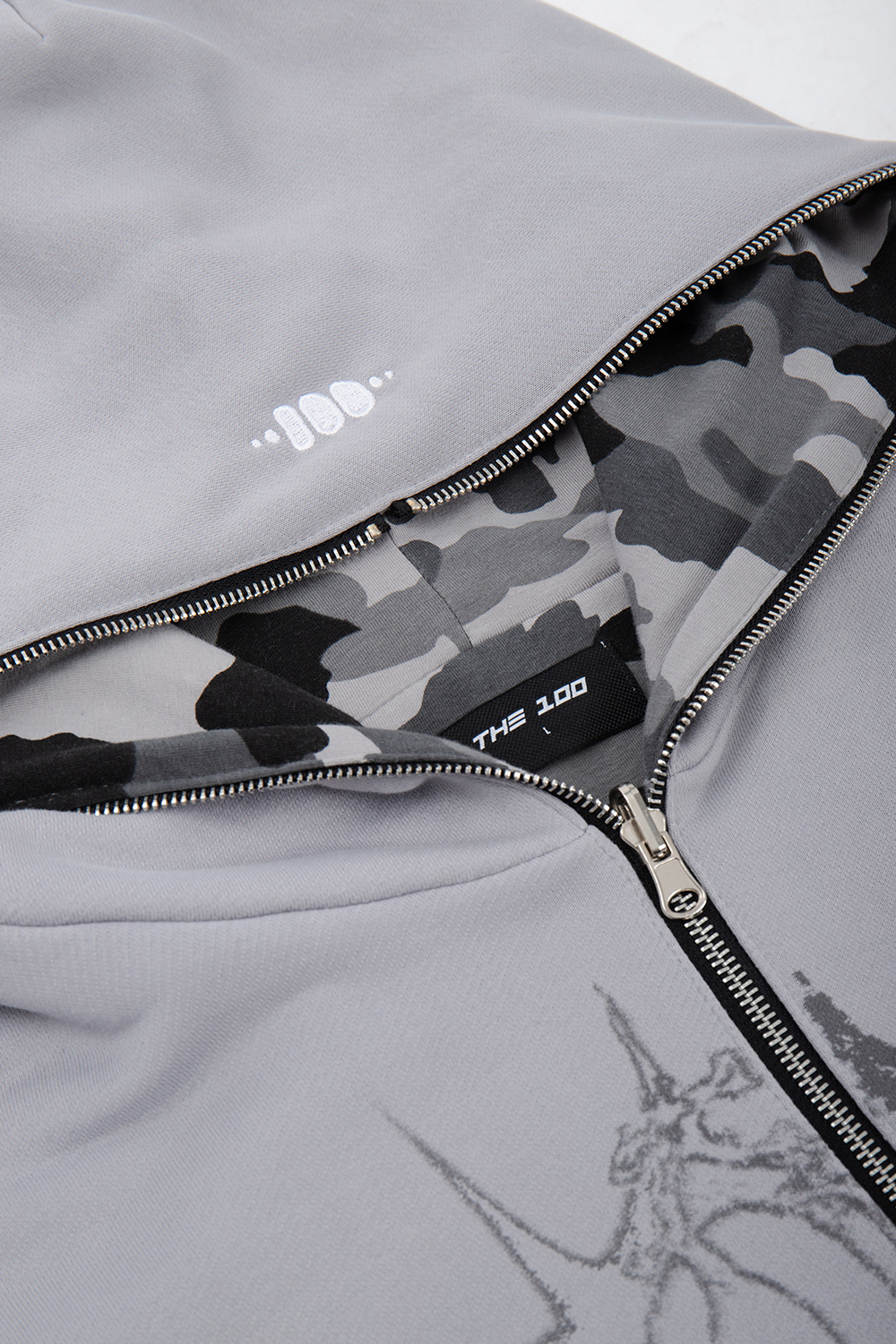- SREBRNY ZAMEK BŁYSKAWICZNY FULL ZIP SIĘGAJĄCY PO CZUBEK KAPTURA
