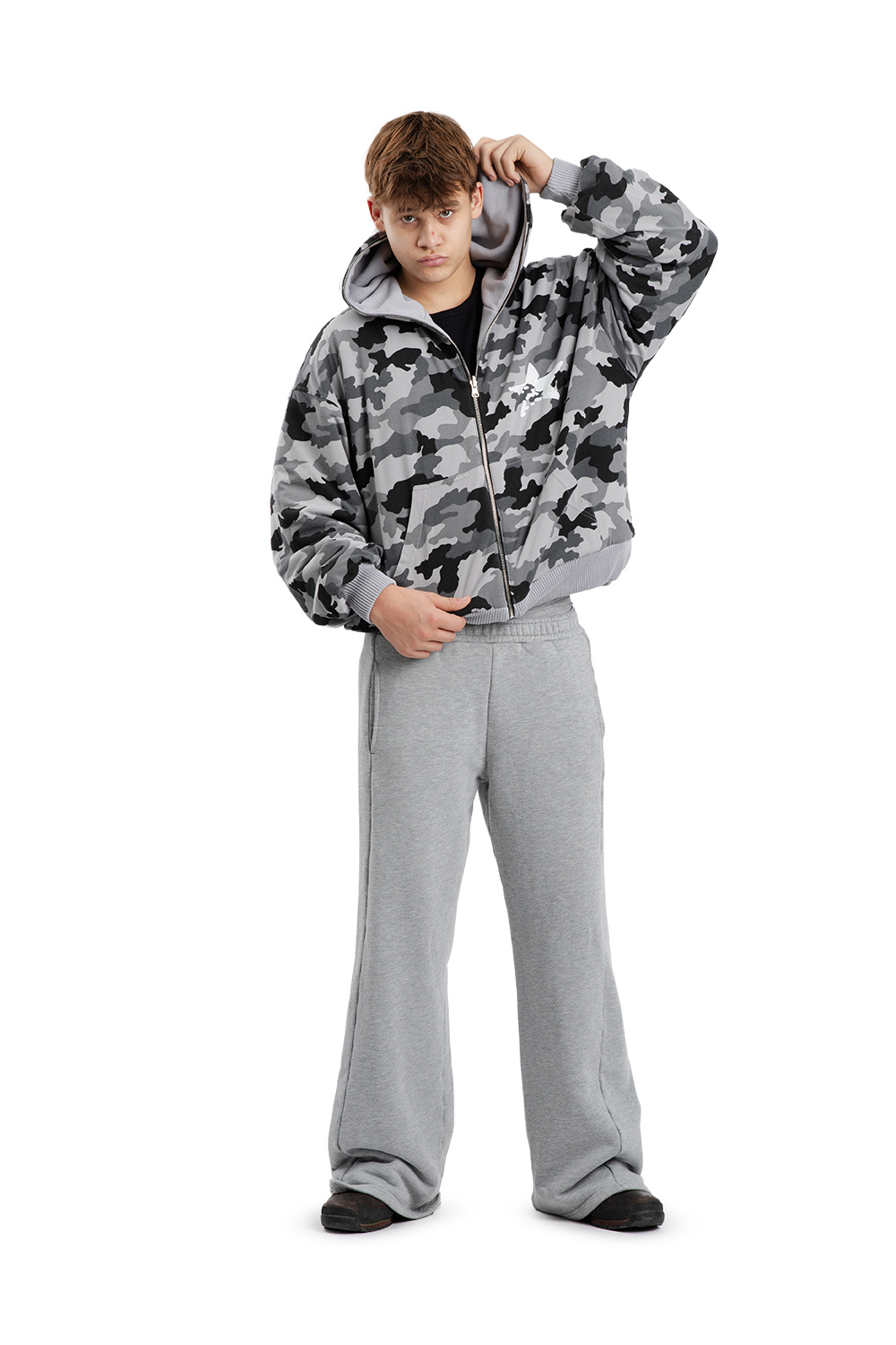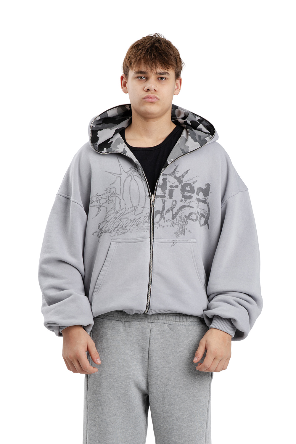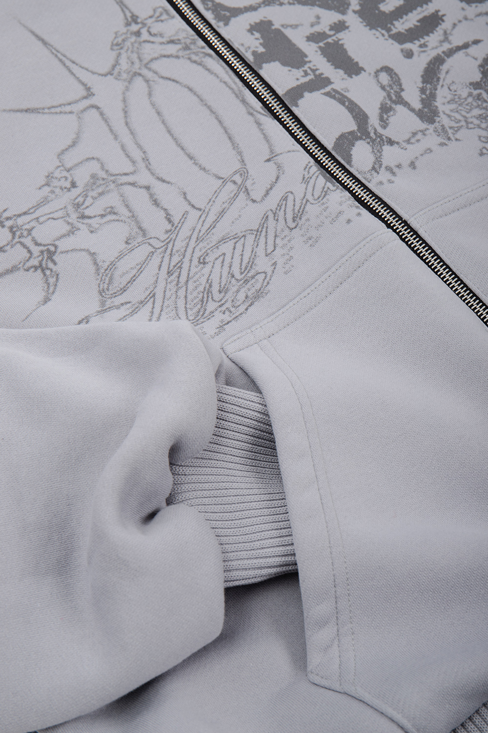 - SREBRNY ZAMEK BŁYSKAWICZNY FULL ZIP SIĘGAJĄCY PO CZUBEK KAPTURA