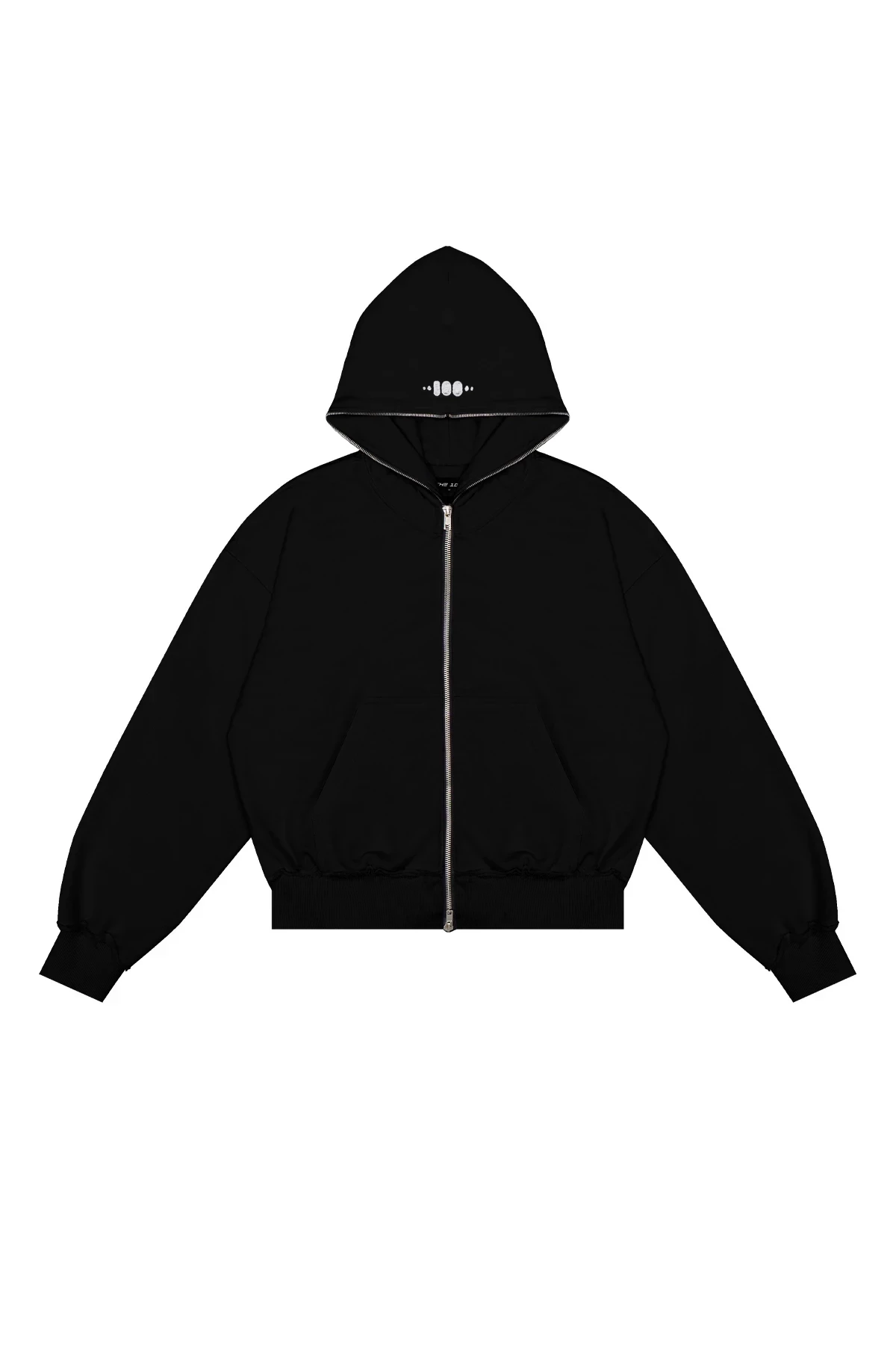 - SREBRNY ZAMEK BŁYSKAWICZNY FULL ZIP SIĘGAJĄCY AŻ PO CZUBEK KAPTURA