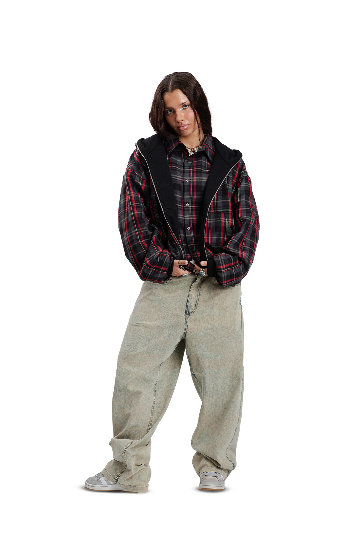Wykonane w 100% z wysokogatunkowej bawełny warstwa dresówki o gramaturze 400gsm i tkanina bawełniana w kratę o gramaturze 150gsm.
