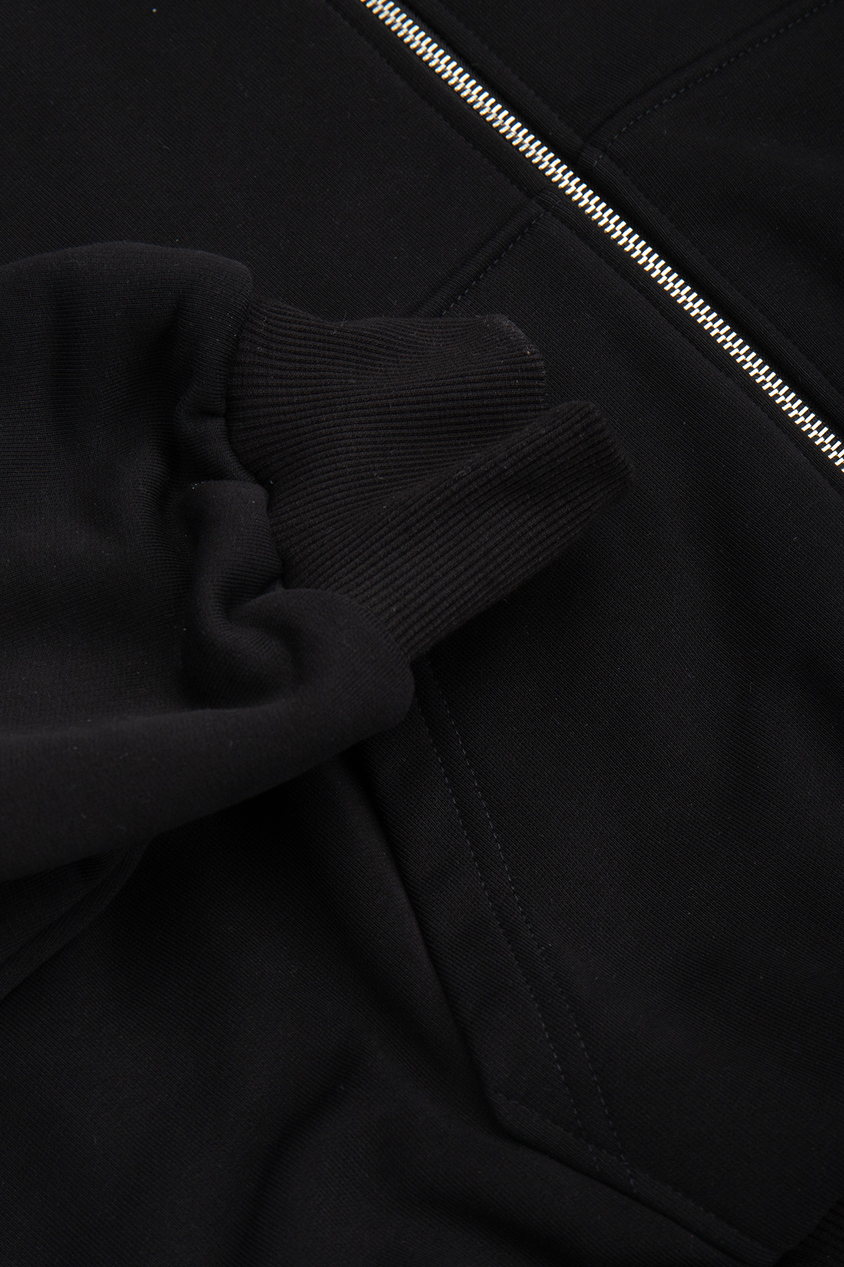 Bluza z kapturem z pełnym zamkiem błyskawicznym, który sięga aż po czubek kaptura. Krój “puffy” nadaje bluzie lekko ovesizowy wygląd.