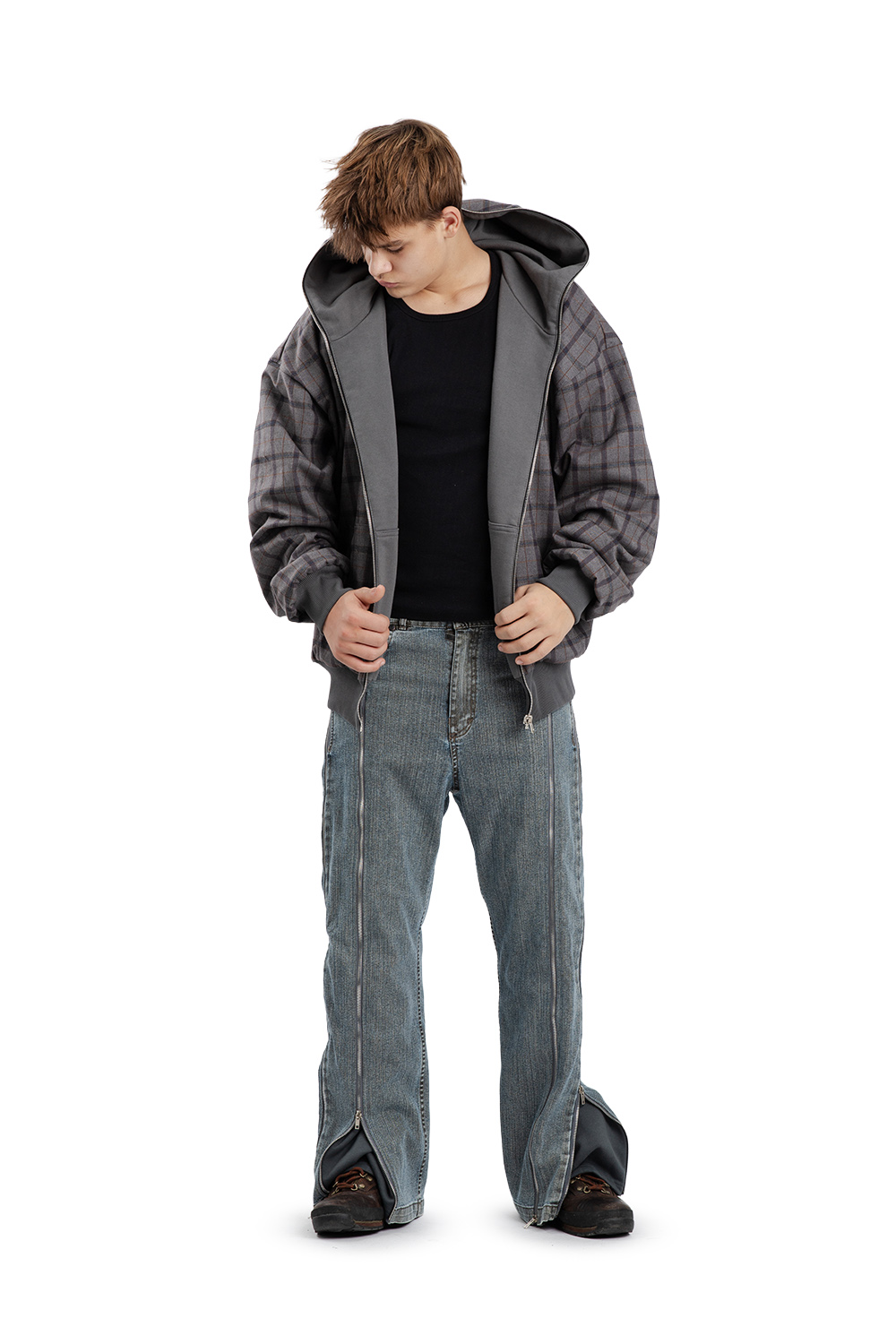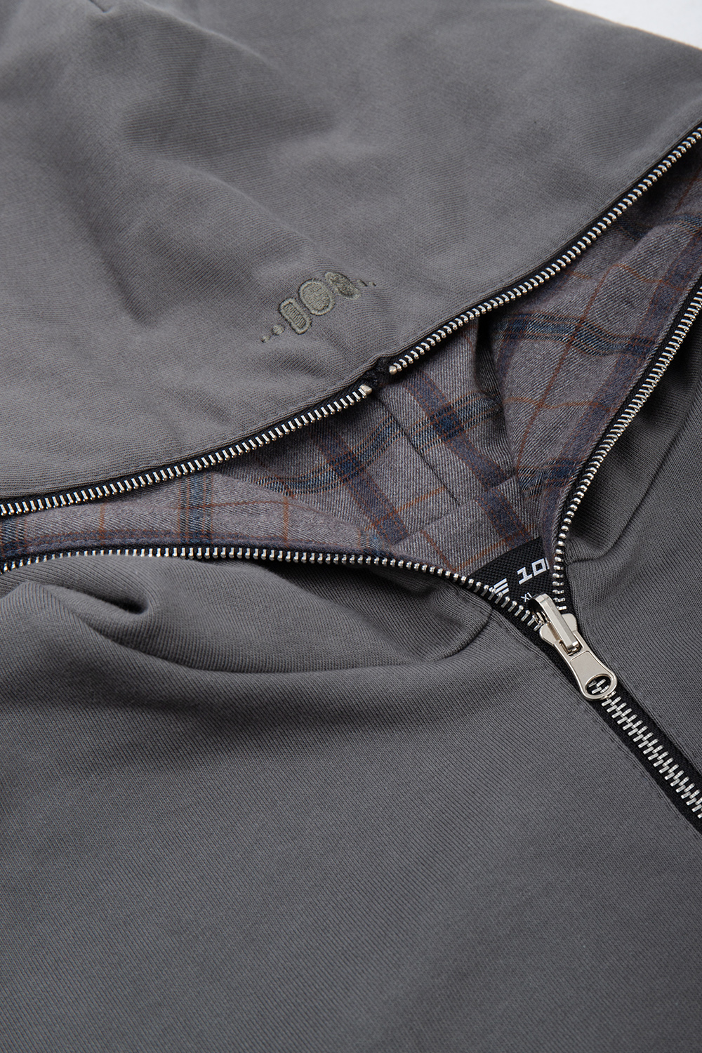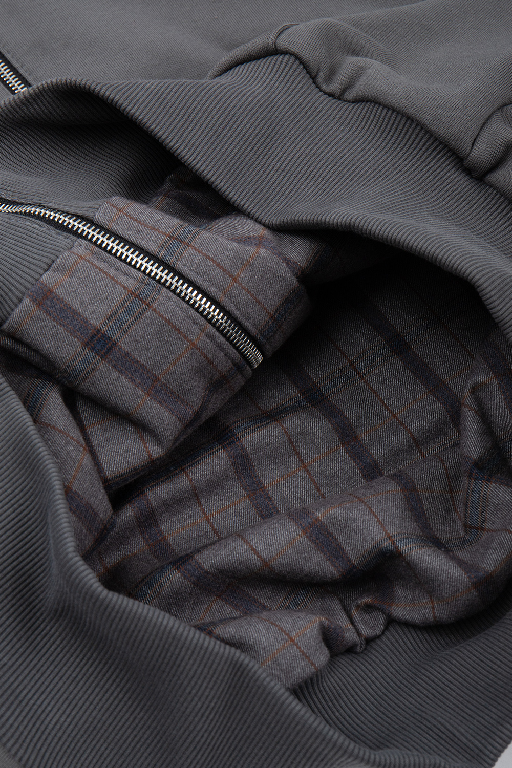 - Srebrny zamek błyskawiczny full zip sięgający po czubek kaptura