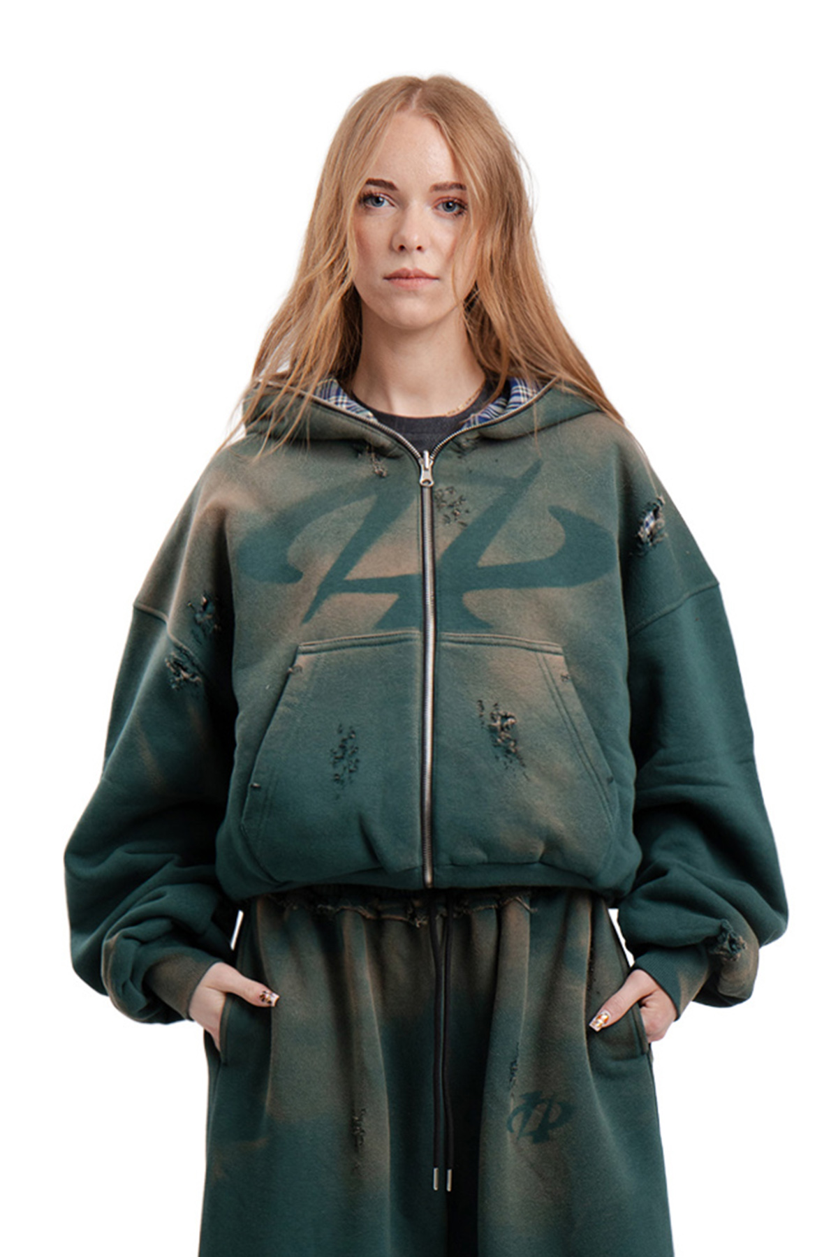 Bluza Reversible Trashed & Crushed Green