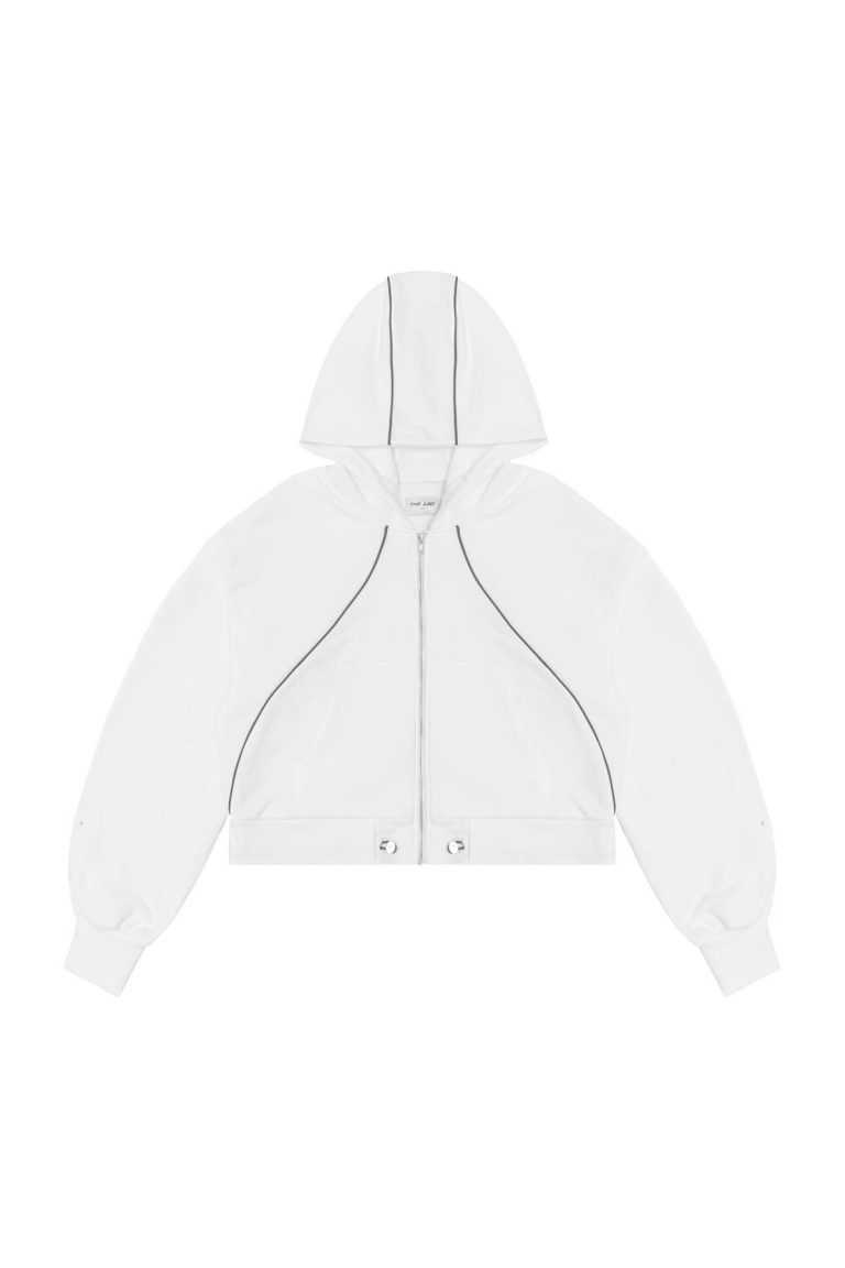 Kontrastujące białe lampasy na rękawach i tułowiu.