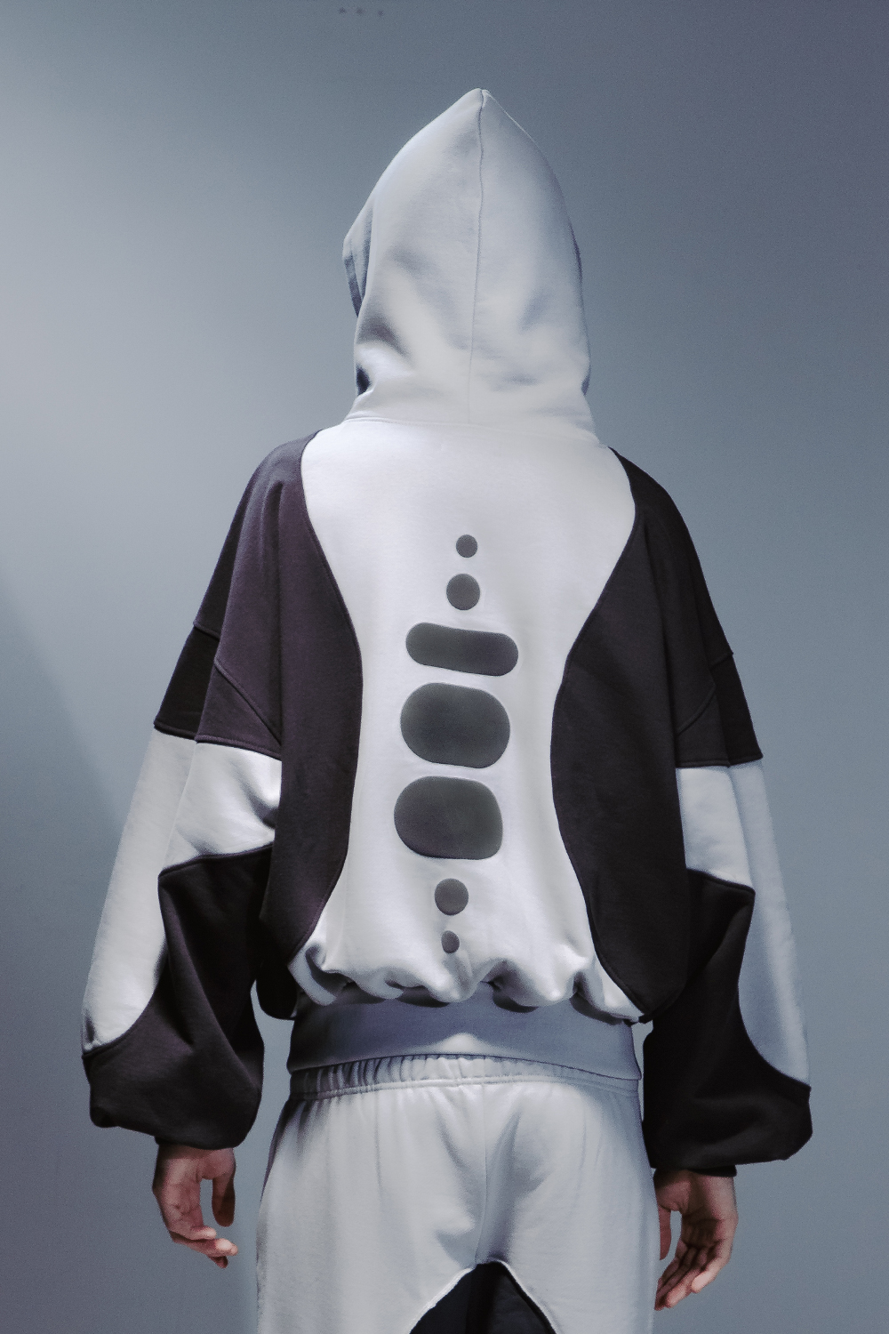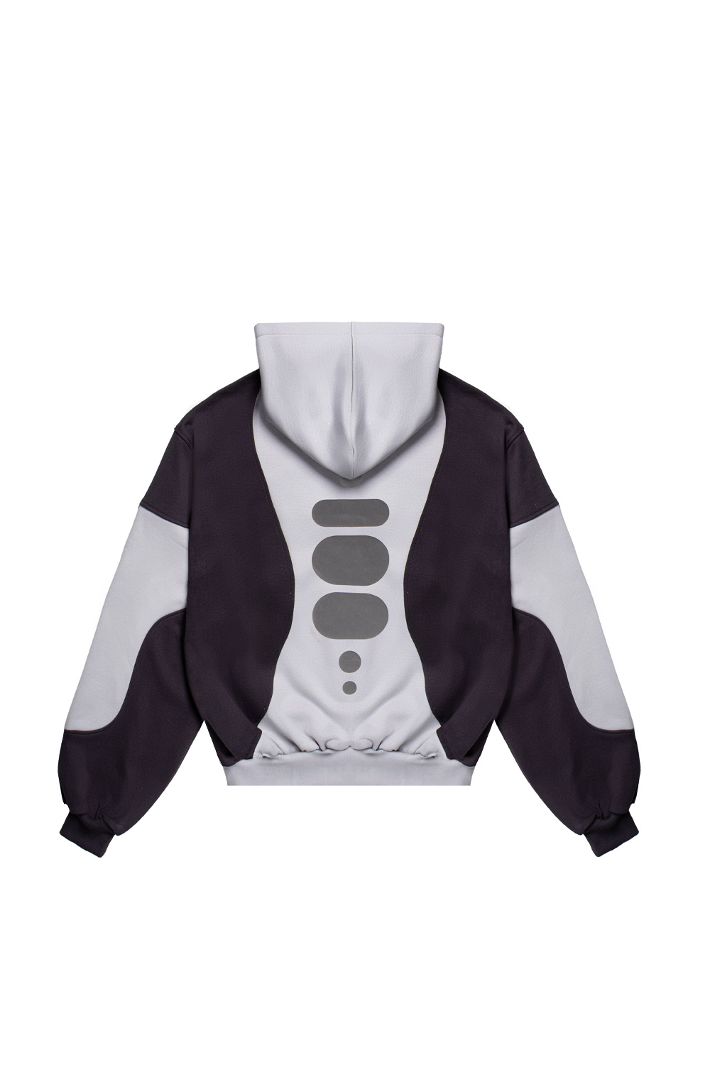 Szaro-grafitowa bluza z kapturem, krój puffy.