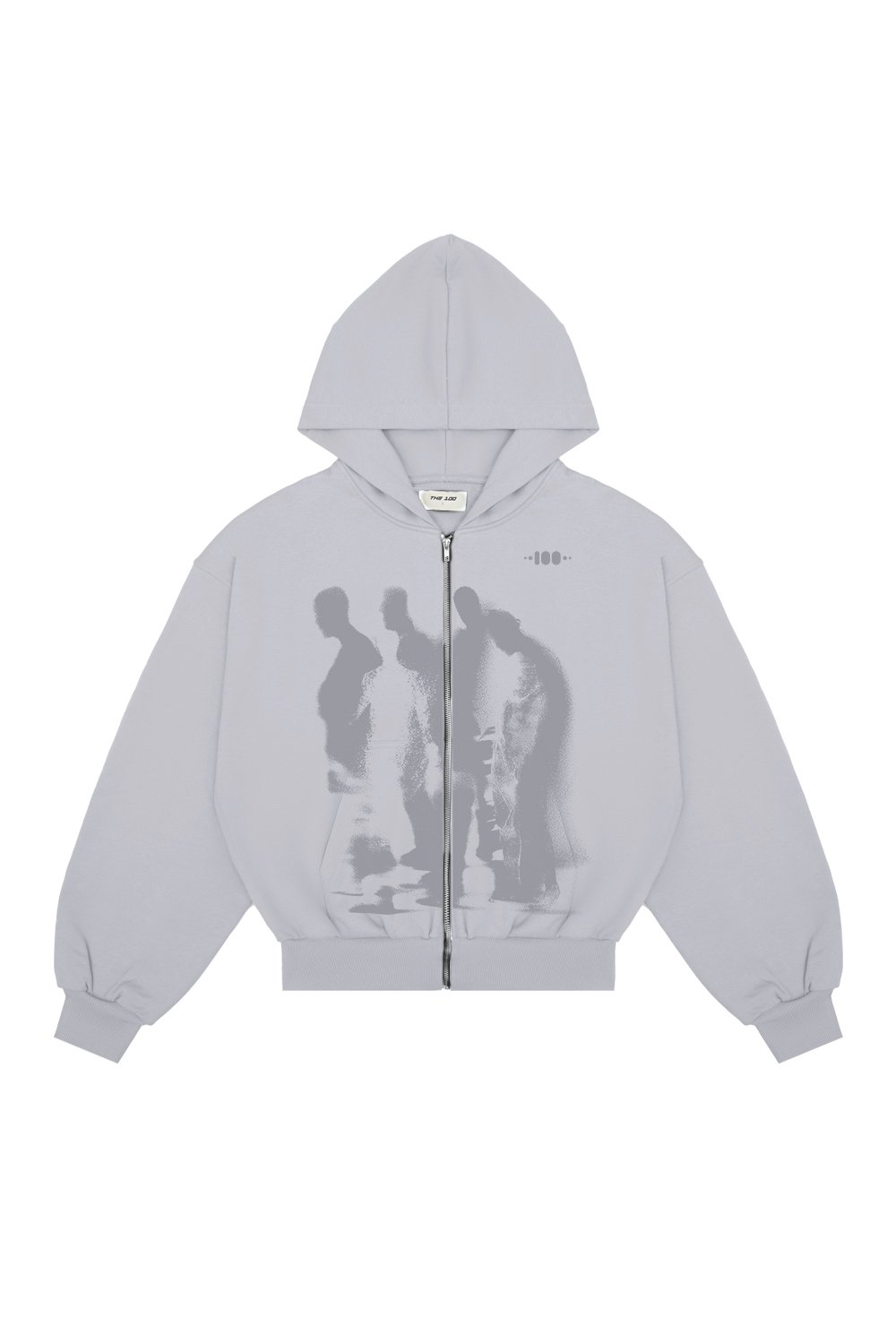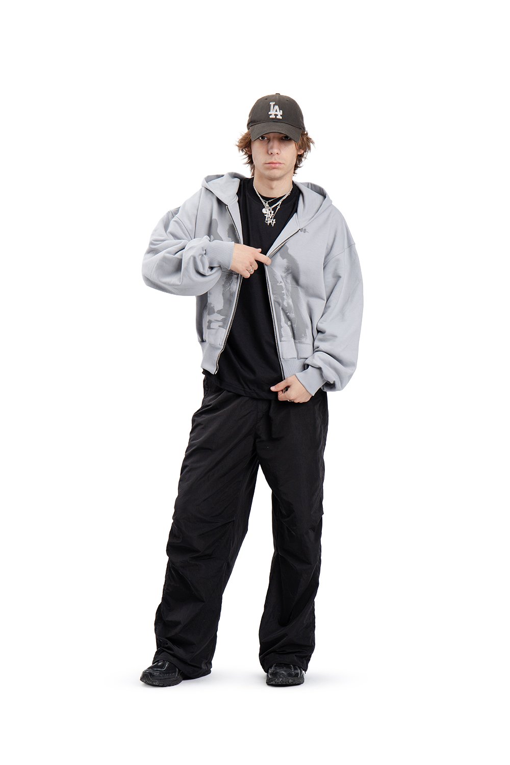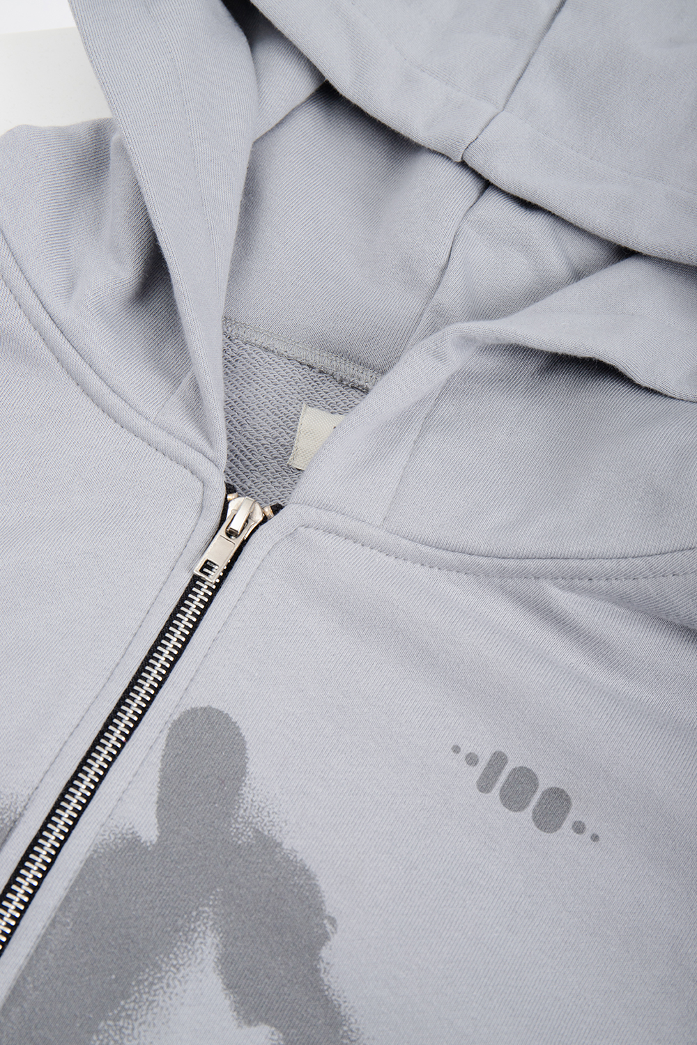 Bluza z kapturem o kroju “puffy zip” nadającym bluzie lekko ovesizowy wygląd.