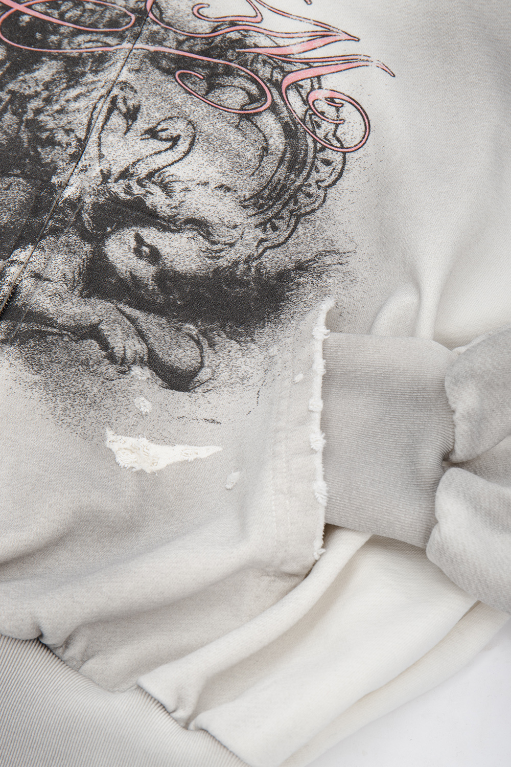 Precyzyjne przeszycia i tonalne szwy. Suwak błyskawiczny w kolorze srebrnym. Wysokiej jakości naturalna dzianina pętelkowa (niedrapana) premium 500gsm, 100% bawełna. Materiał z efektem postarzania, każda bluza zawiera unikalny wzór.