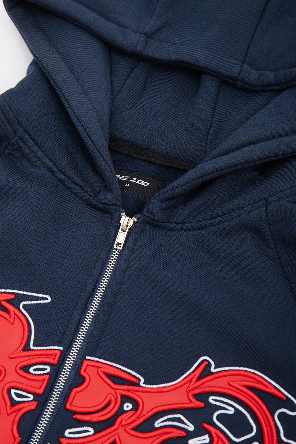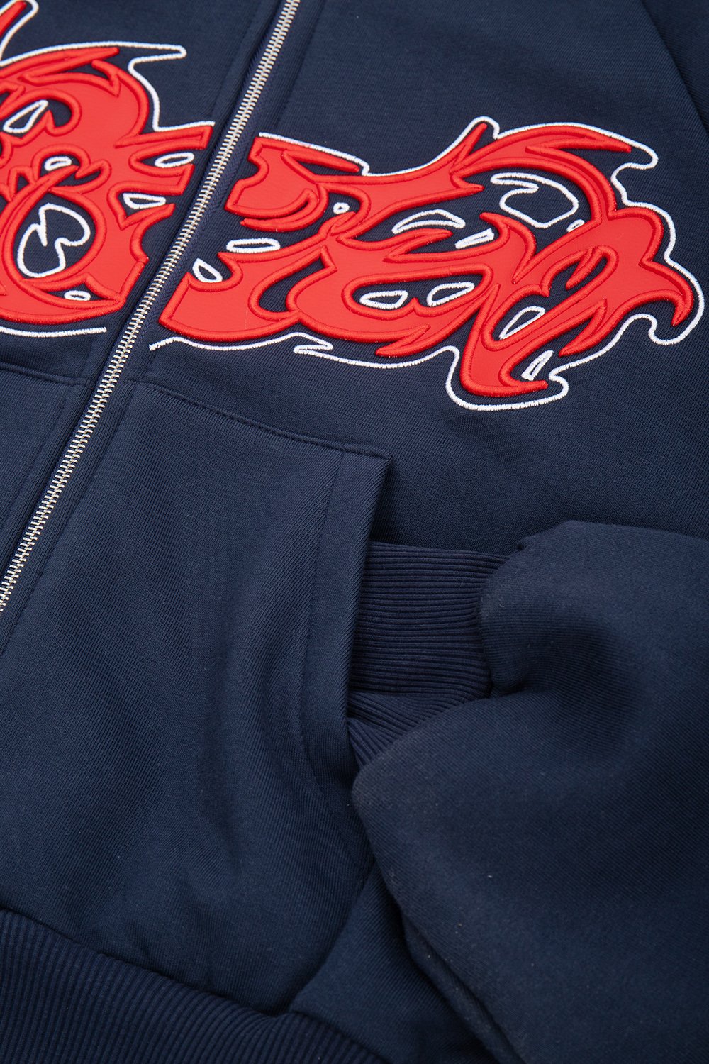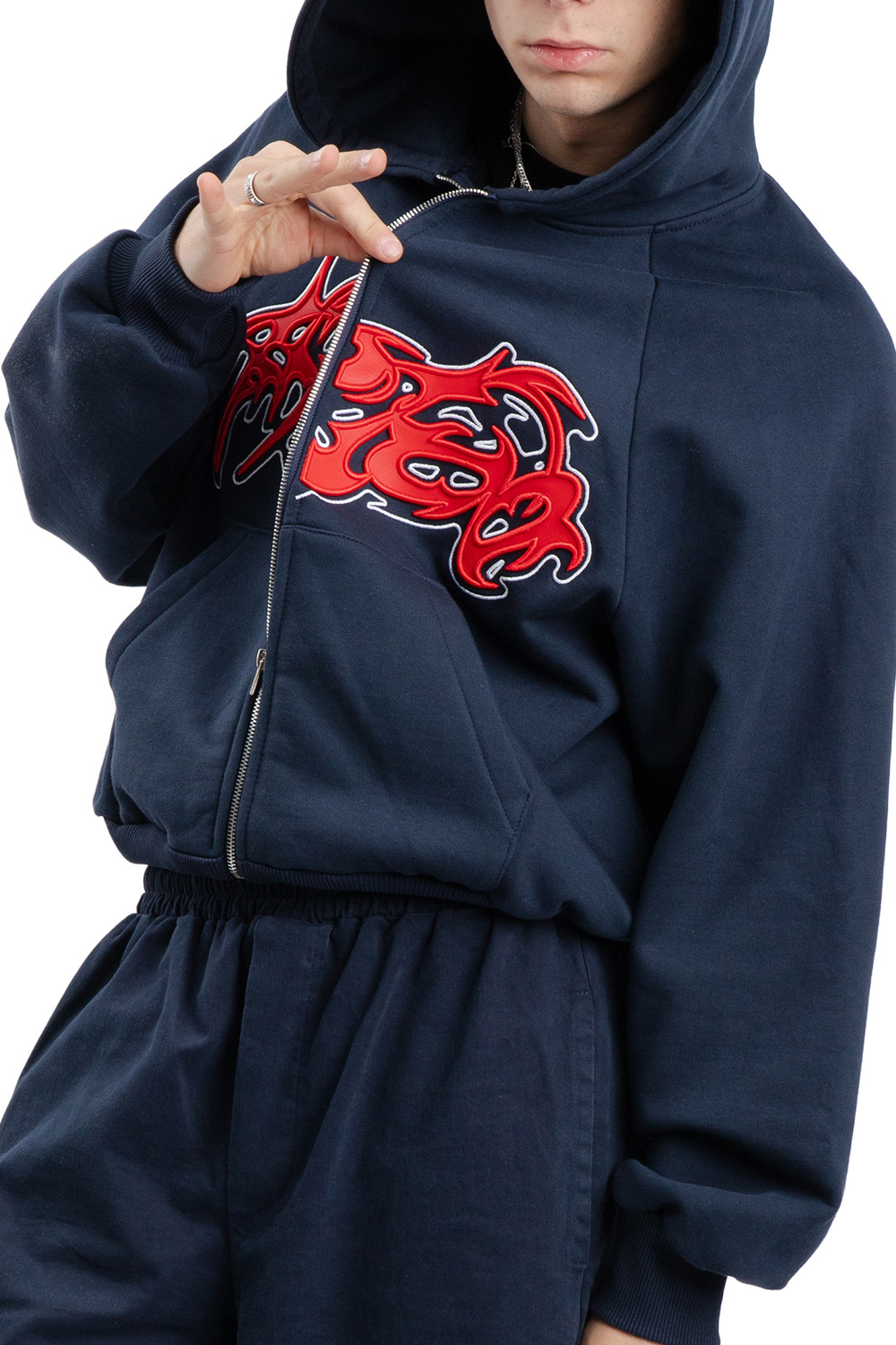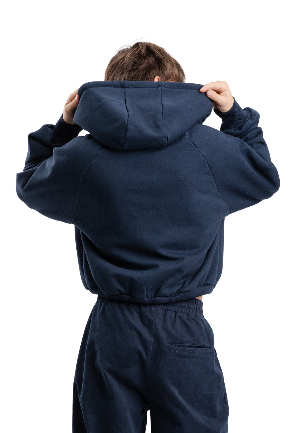 Bluza z kapturem o kroju “puffy” z zamkiem błyskawicznym, lekko ovesizowy wygląd.