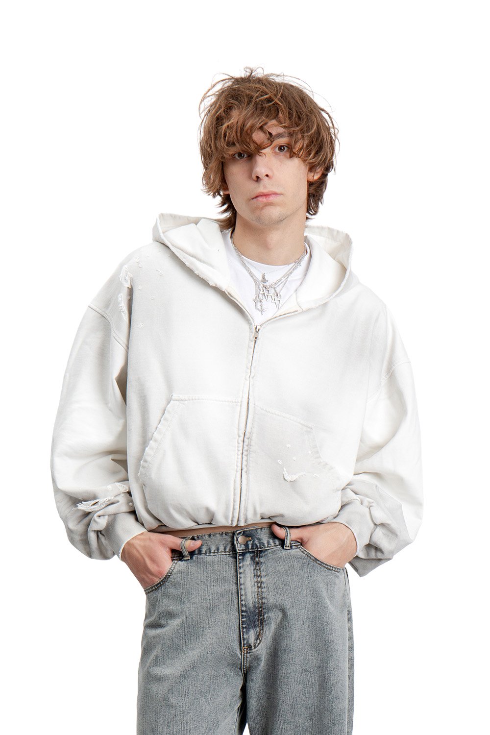 - BLUZA ROZPINANA Z KAPTUREM Z EFEKTEM FULL DISSTRESSED