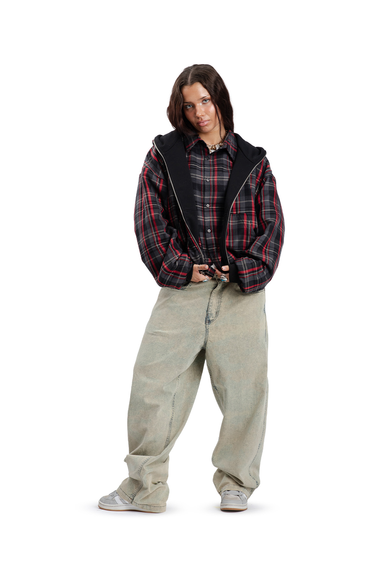 Spodnie jeansowe o oversizowym kroju z szeroką nogawką.