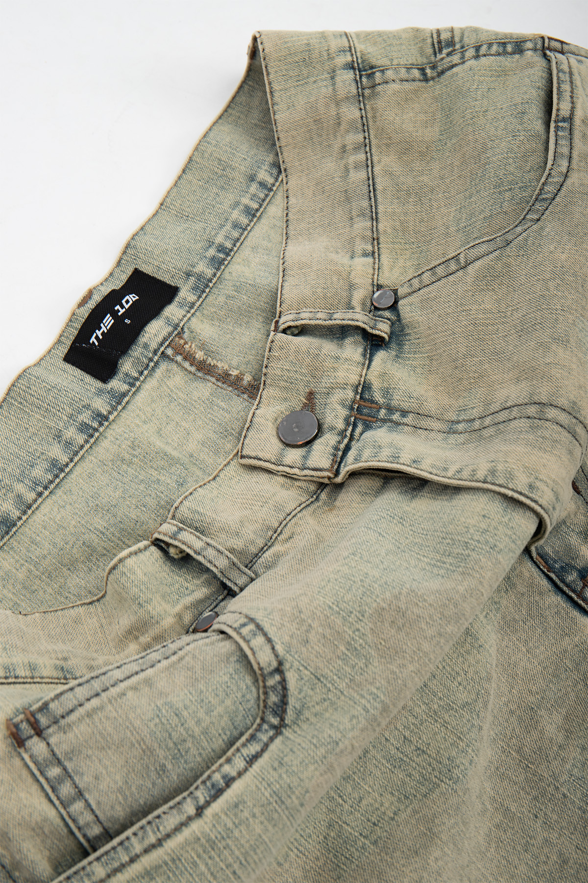 Zapięcie na guziki i suwak, wygodne szerokie szlufki.