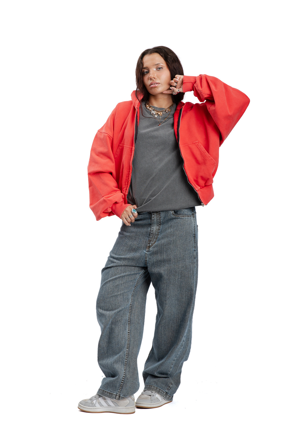 Spodnie jeansowe o oversizowym kroju z szeroką nogawką.