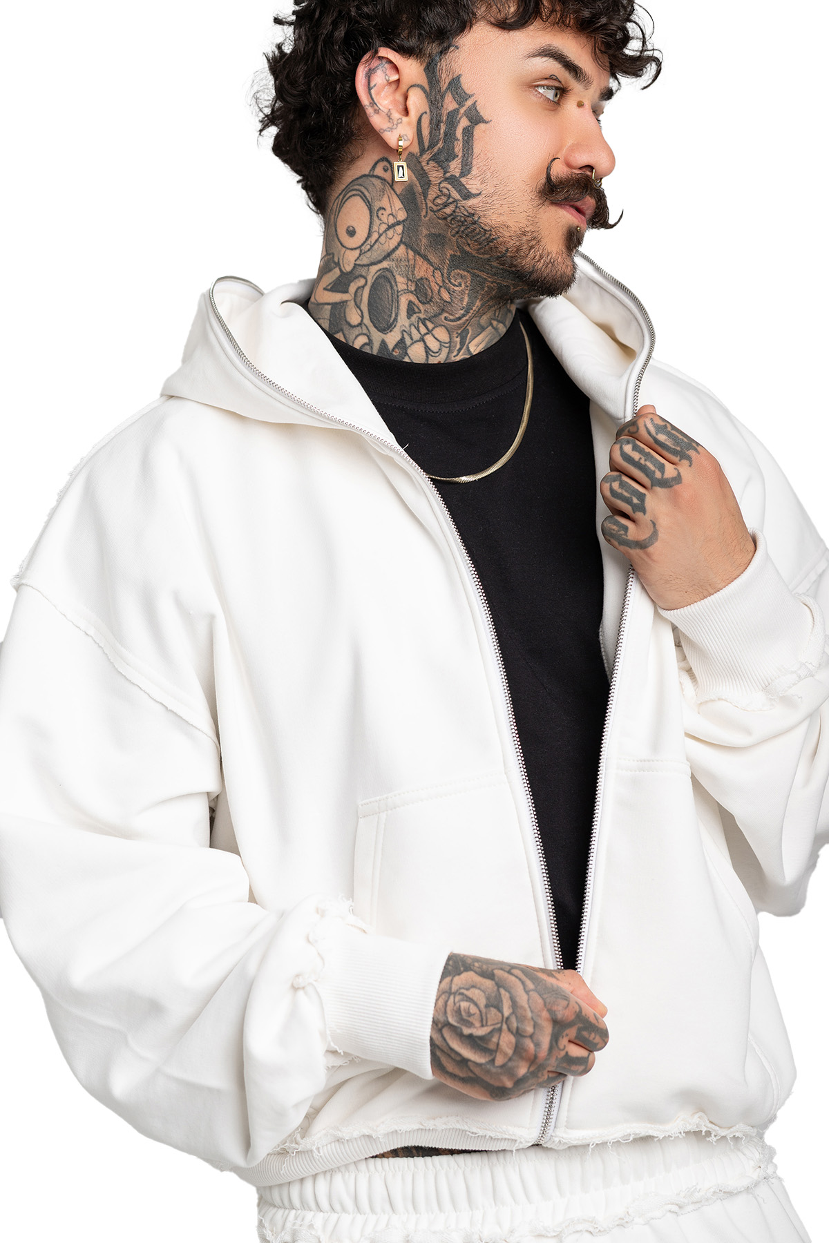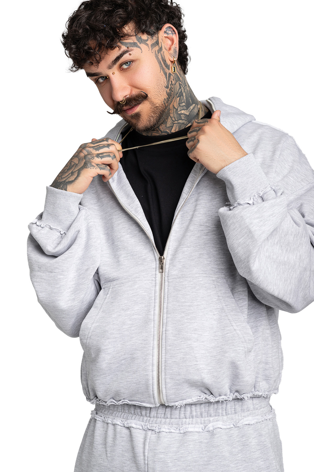 Bluza z kapturem o kroju “puffy”, z pełnym zamkiem błyskawicznym, który sięga aż po czubek kaptura. Krój “puffy” nadaje bluzie lekko ovesizowy wygląd.