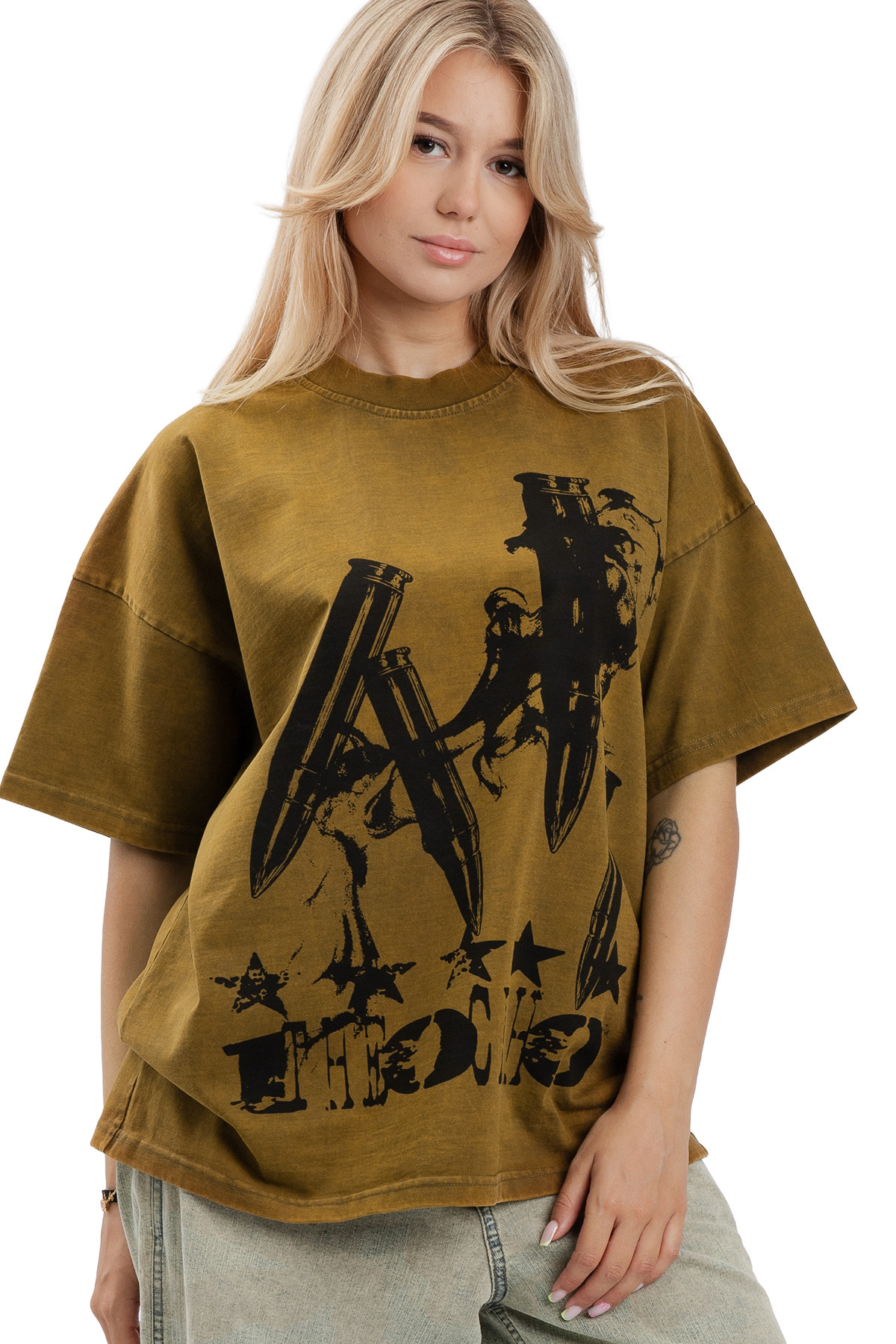 Koszulka z krótkim rękawem w kolorze khaki z efektem sprania. Wykonana w 100% z wysokogatunkowej bawełny o gramaturze 330 gsm.