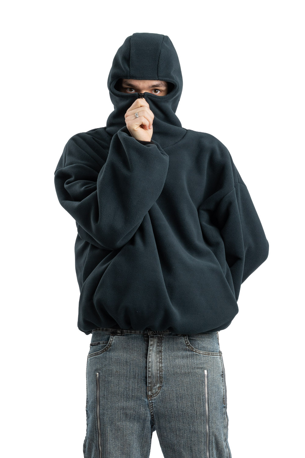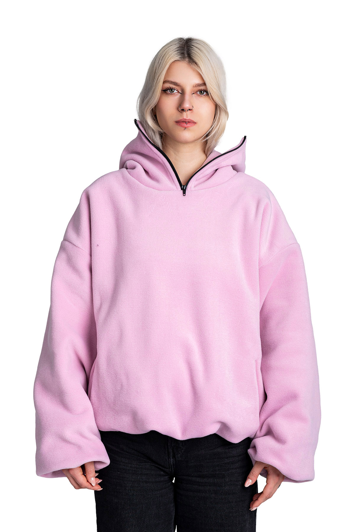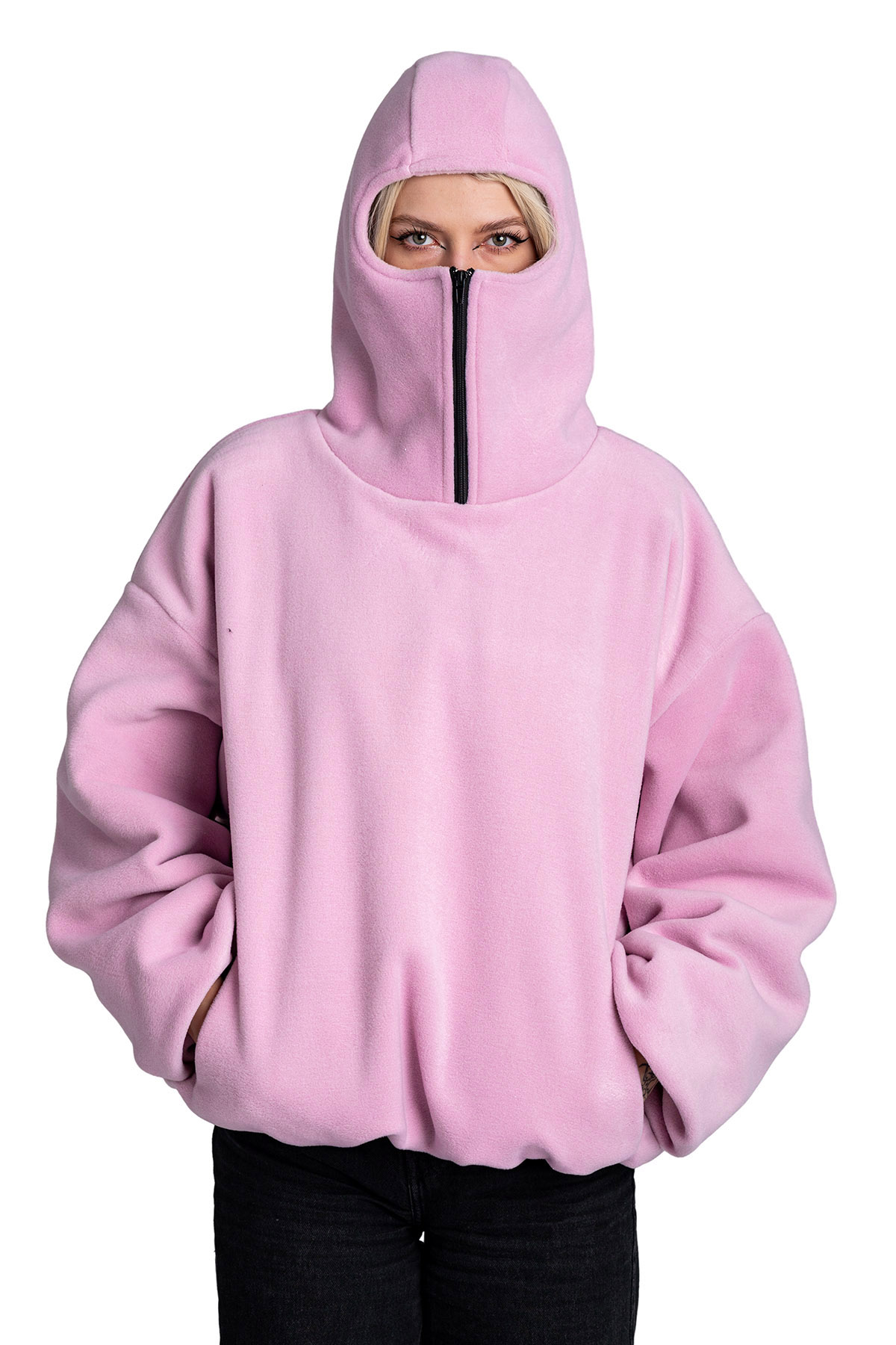 Polar z długim rękawem i kapturem.