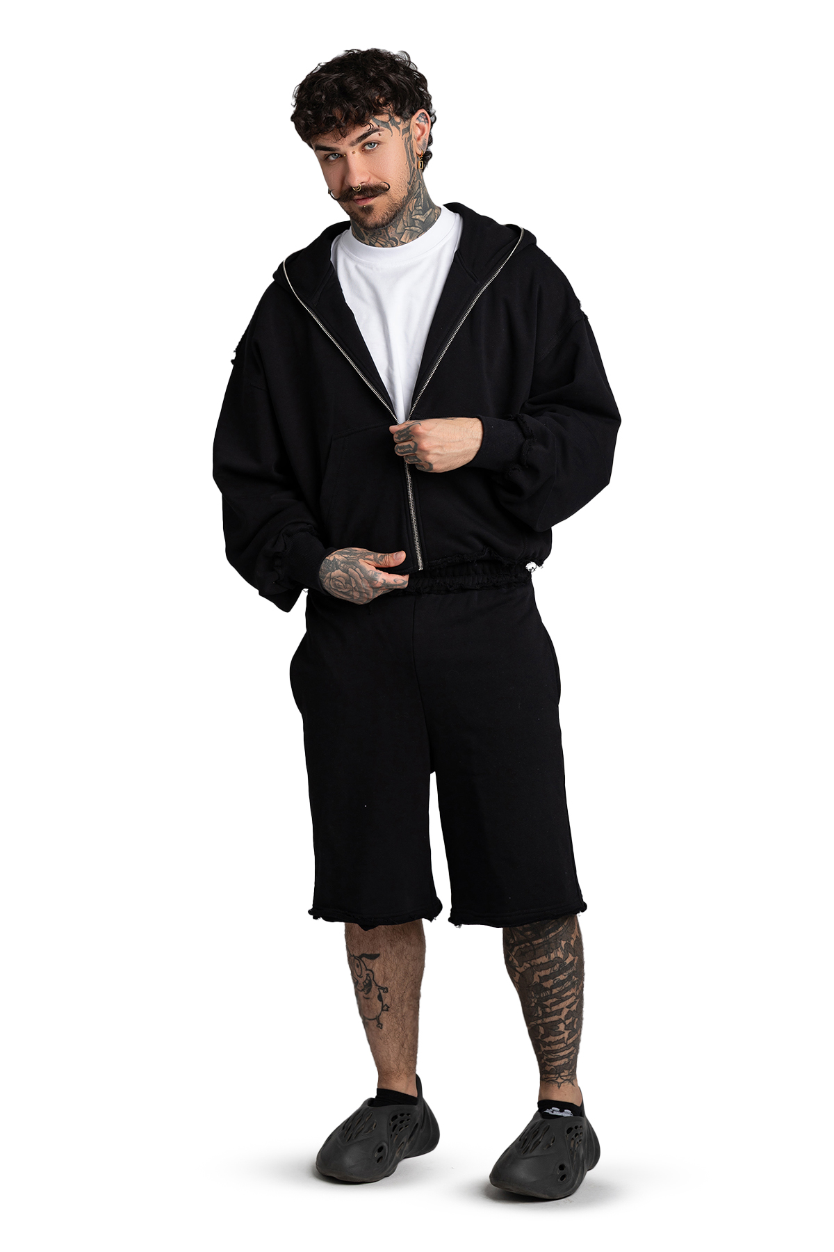 Spodenki bawełniane o luźnym, komfortowym kroju, wykonane z wysokiej jakości dzianiny 330gsm, 90% bawełna 10% poliester. Naturalna tkanina jest miękka, oddychająca i trwała a dodatek poliestru sprawia, że dzianina jest lekko elastyczna i nie wypycha się na rękawach i kolanach.