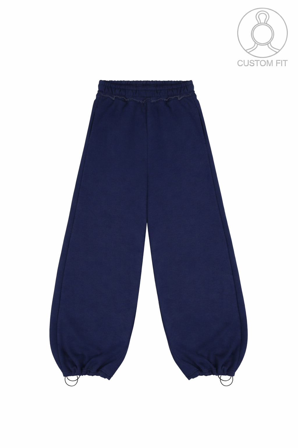 Ściągacze na dole spodni. Haftowany wzór logo i nogawce.