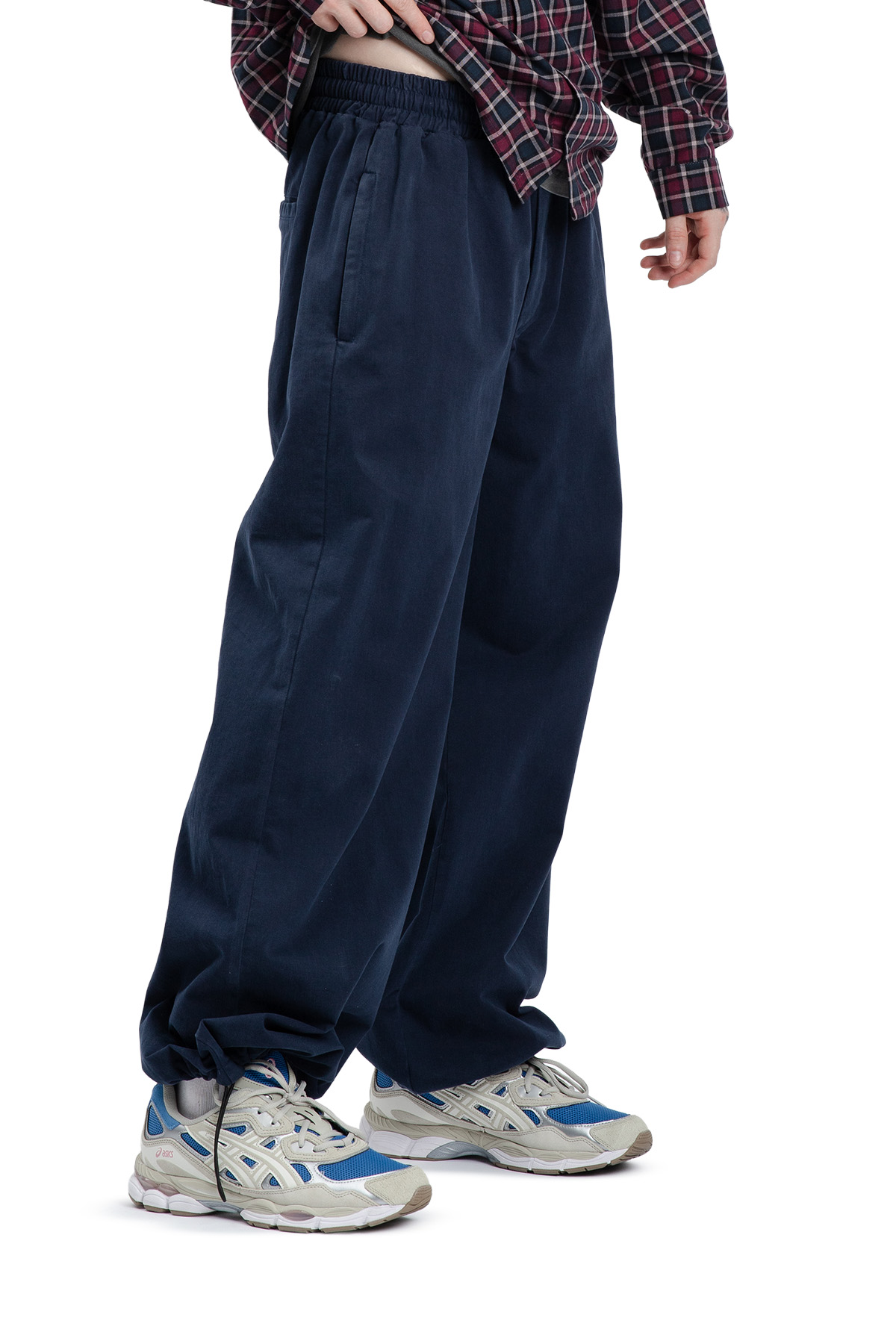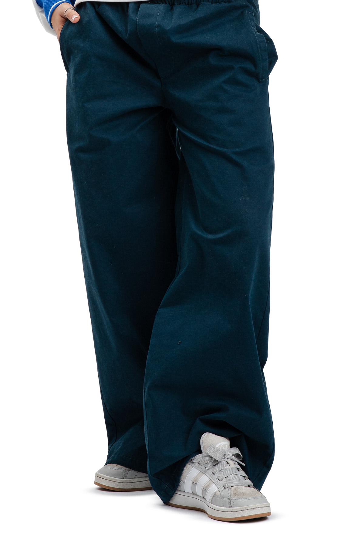 Spodnie bawełniane o klasycznym kroju z szeroką nogawką.