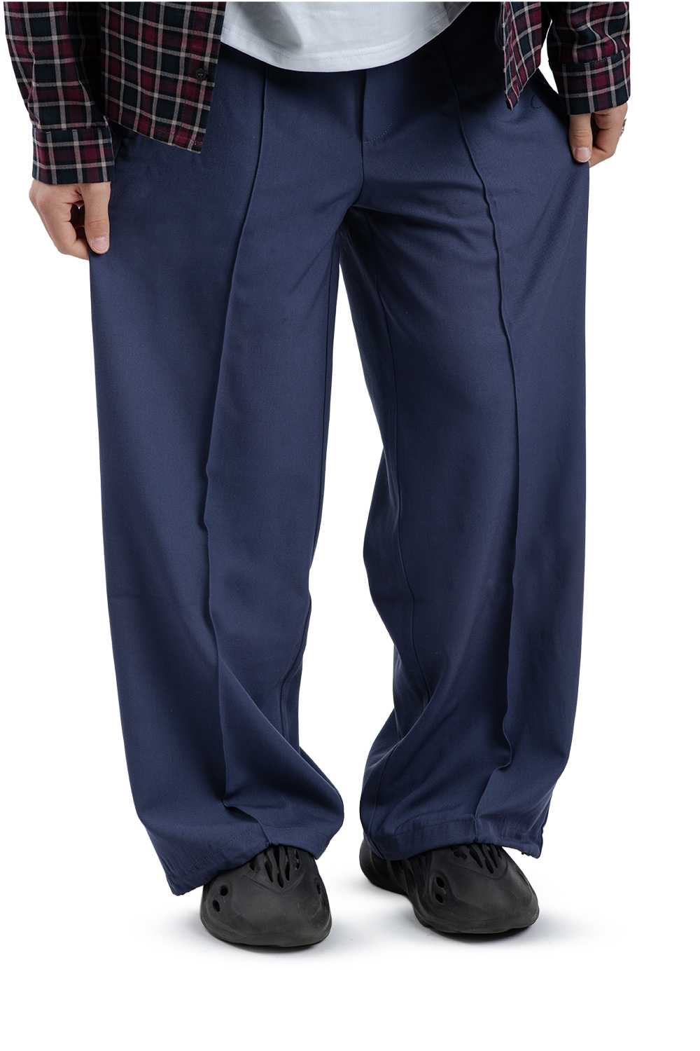 Komfortowe otwarte kieszenie po bokach. Ozdobny kant na nogawkach.