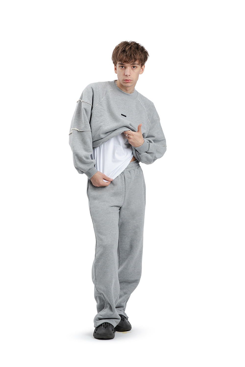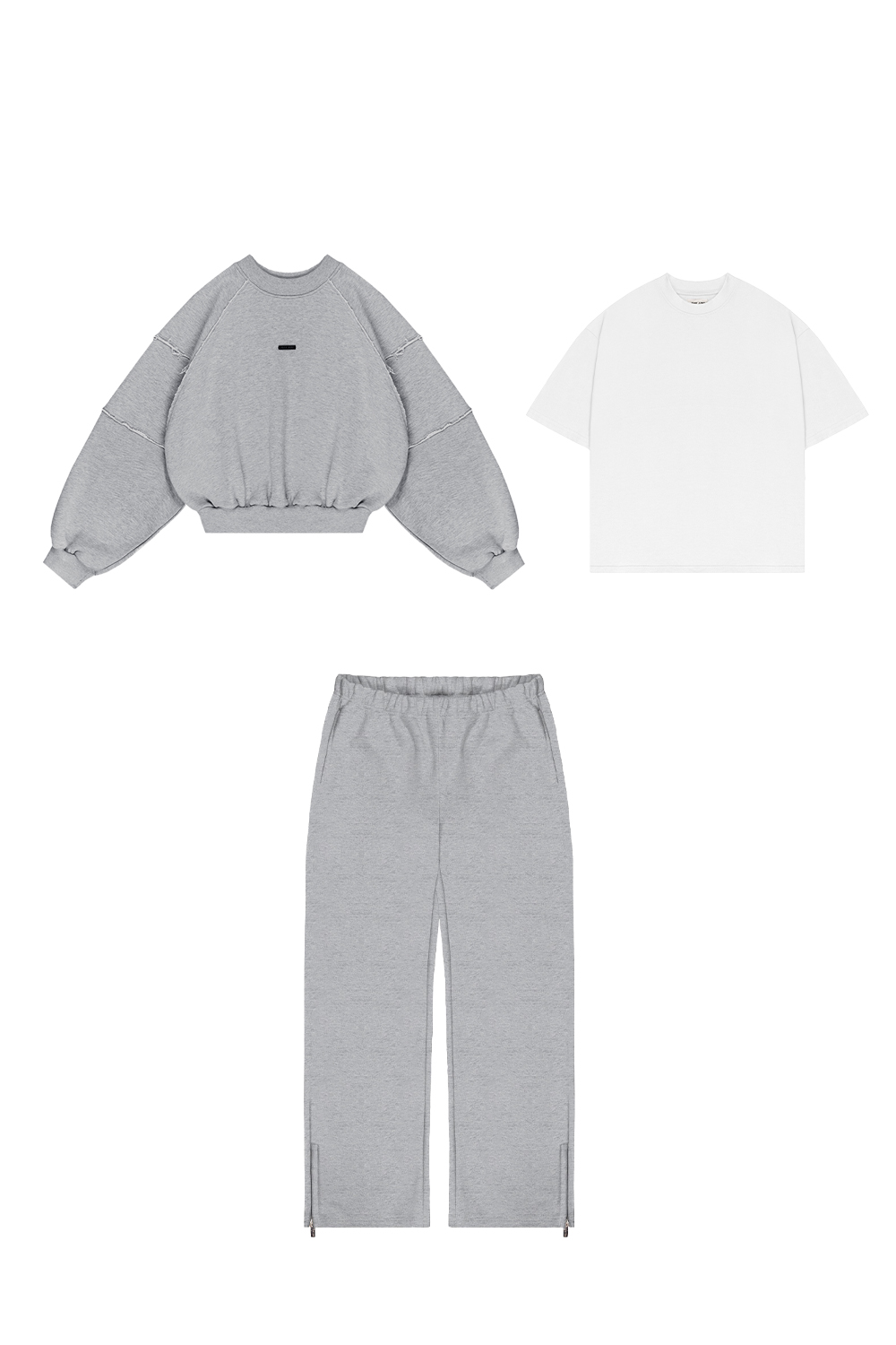 Bluza typu crewneck oraz spodnie dresowe w kolorze szarym.